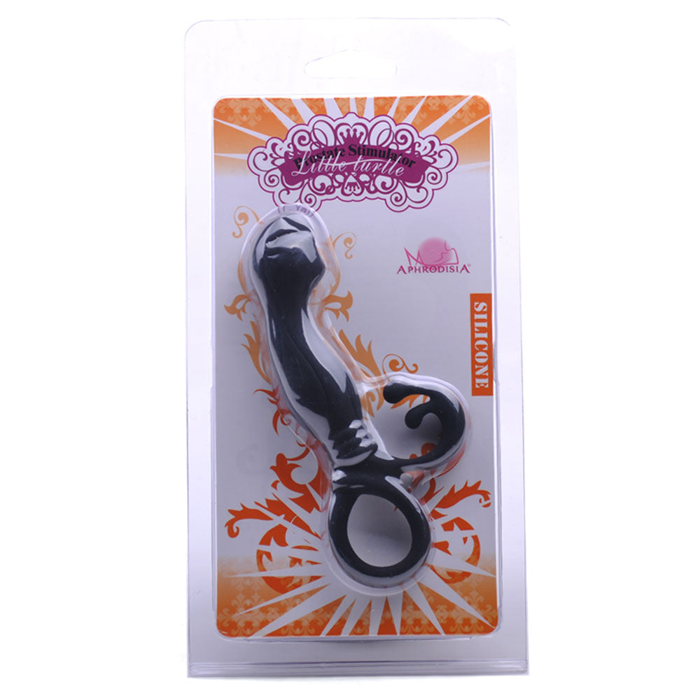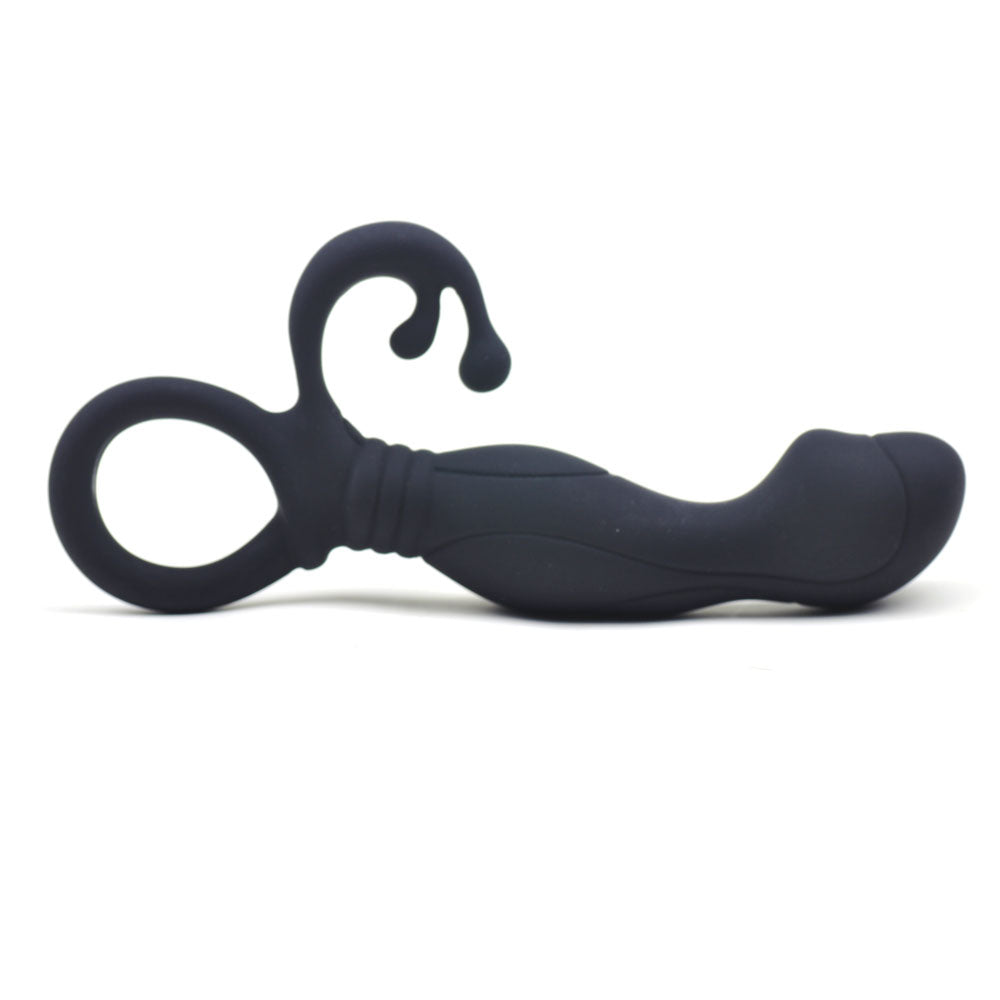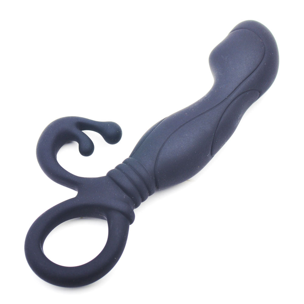 Slip this prostate stimulator in your back door and pleasure awaits. The curved body will seek out your p-spot while the tickler will tease your perineum to orgasmic heights. The ring at the base keeps the play safe with easy retrieval.