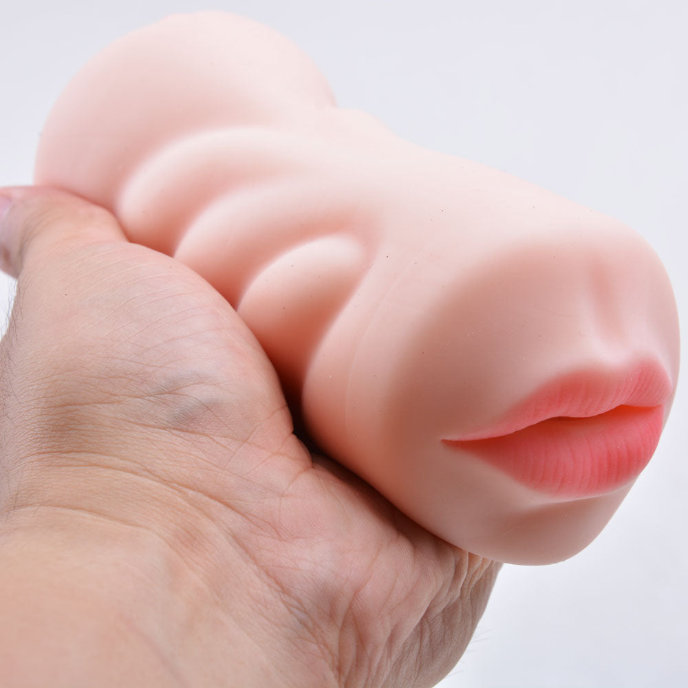 Double the holes for double the pleasure! Features both mouth and vagina openings as well as an easy grip nodule design and ribbed inner texture for the ultimate pleasure session. The life like feel is perfect for training to improve your staying power for the real deal.