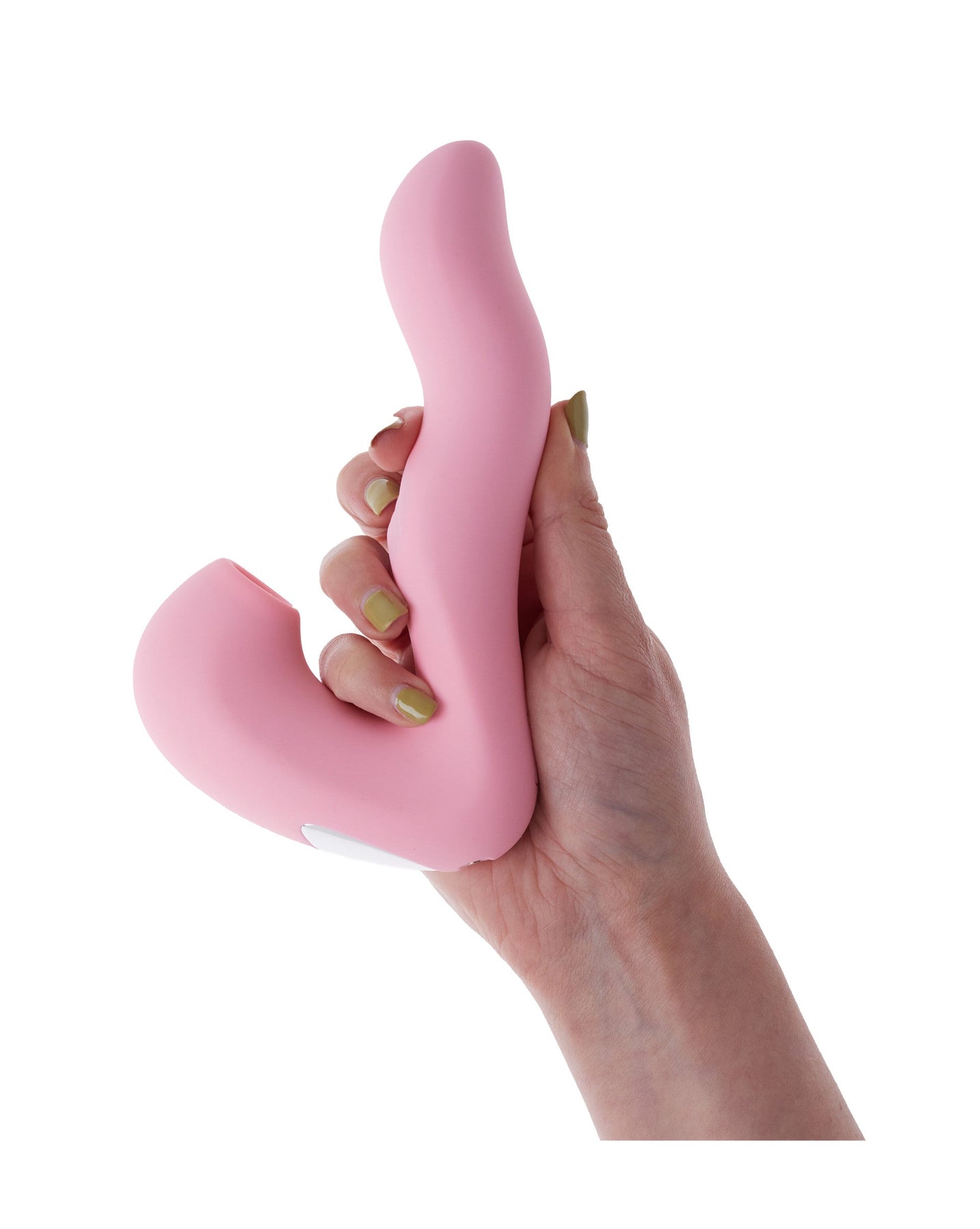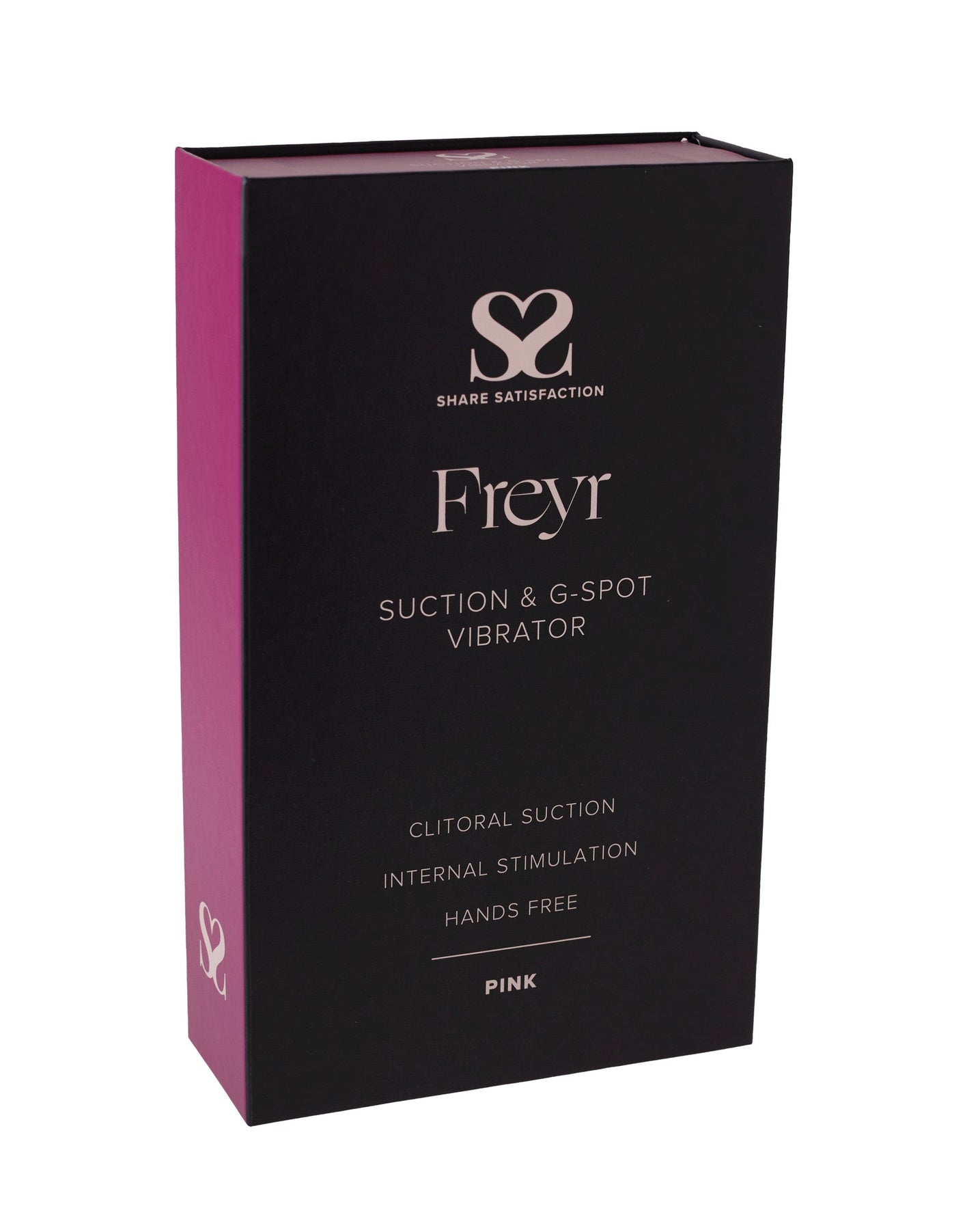 Looking for a dual stimulation toy with a bit of extra length? Well your wish is our command with the Freyr Dual Stimulator by luxury sex toy brand Share Satisfaction. Designed with your pleasure in mind, this gorgeous vibrator features three separate functions ensuring all your most pleasurable spots are stimulated. Freyr offers 10 modes of vibration in the shaft, 5 suction modes for clitoral stimulation and 5 tapping modes for added G-spot action. This toys dreamy combination of negative pressure suction waves and multi-function shaft makes it perfect for those who enjoy dual stimulation. Combined with the unique tapping function, Freyr is guaranteed to have you clinging at the sheets. Each motor can be controlled separately allowing you to customise your pleasure. Made out of super soft silicone, Freyr's internal shaft features optimum flexibility allowing it to bend with the natural contours of your body while staying firmly in place during play. Waterproof at an IPX5 level, Freyr is splashproof making cleaning a breeze. It is also USB rechargeable, allowing you to use this toy again-and-again without any fiddly battery changes. Available in a variety of luxurious colours, this elegant toy is guaranteed to bring some additional fun and colour to any bedroom. Are you ready to take your pick?